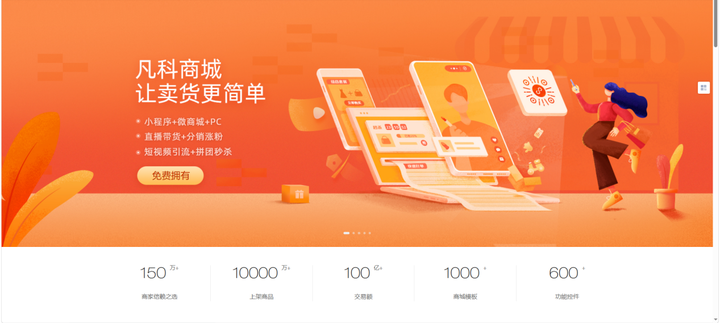 核心優勢:提供可視化拖拽裝修與豐富的營銷插件(拼團、秒殺、分銷),無需技術基礎即可上線;