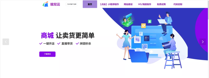 核心優勢:主打輕量級小程序與H5商城搭建,支持一鍵生成多端店鋪,操作流程簡潔;